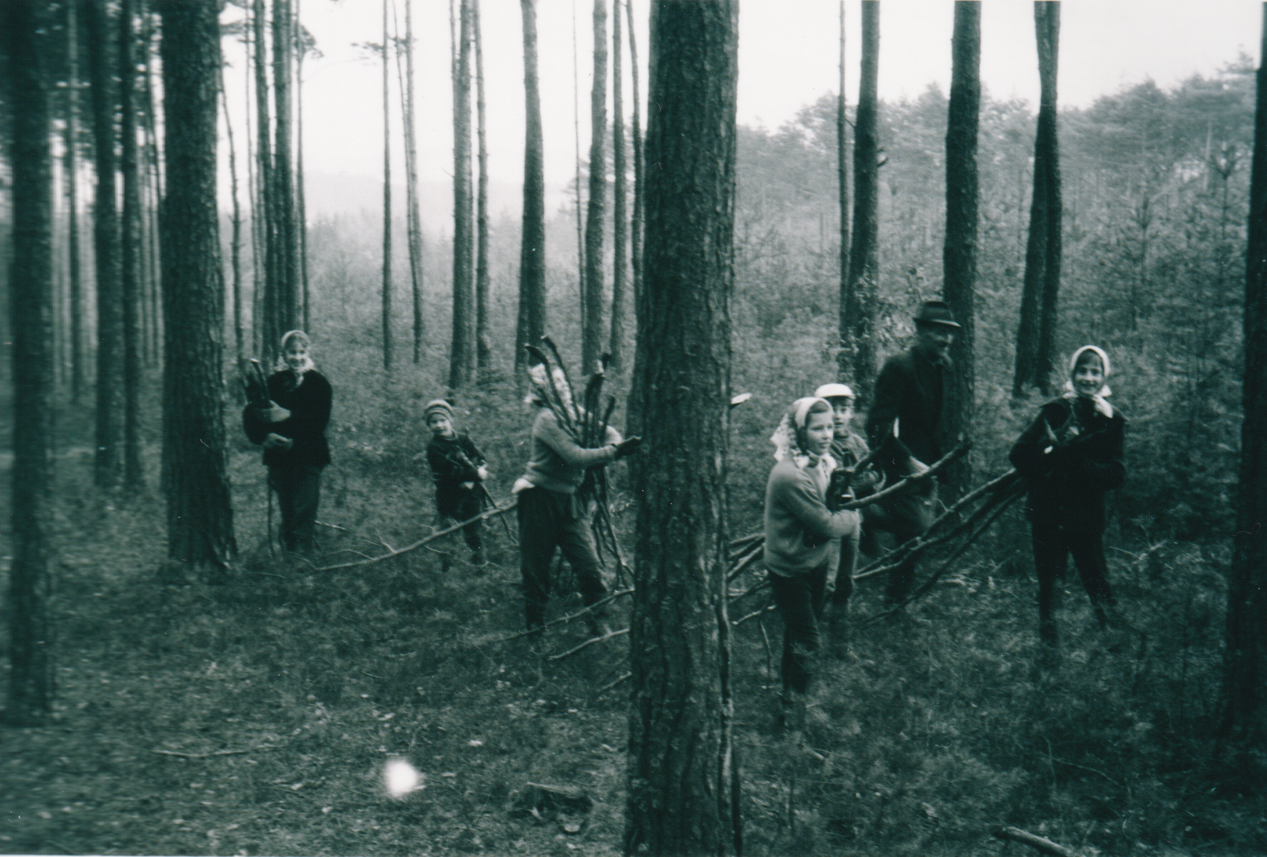 Kinder helfen bei der Waldarbeit, ca. 1970.