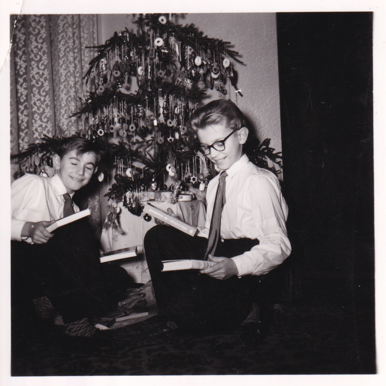 Die Brüder Wilhelm und Erich Resetarits vor dem Weihnachtsbaum.