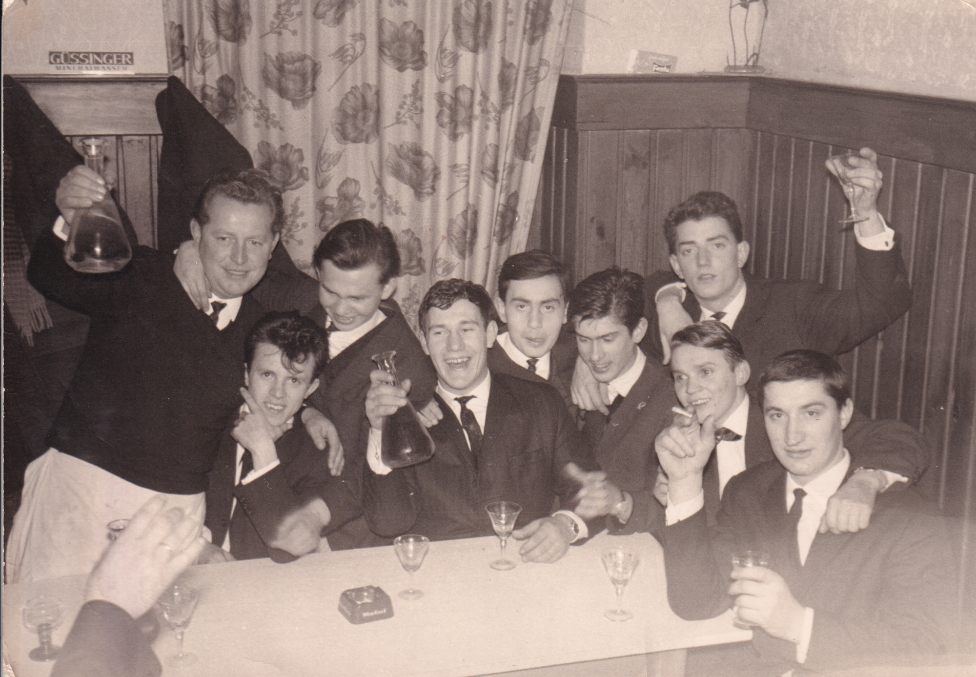 Vorzieher gratulieren zur Hochzeit auf der Feier im Gasthaus "Jelini" im Jänner 1964.