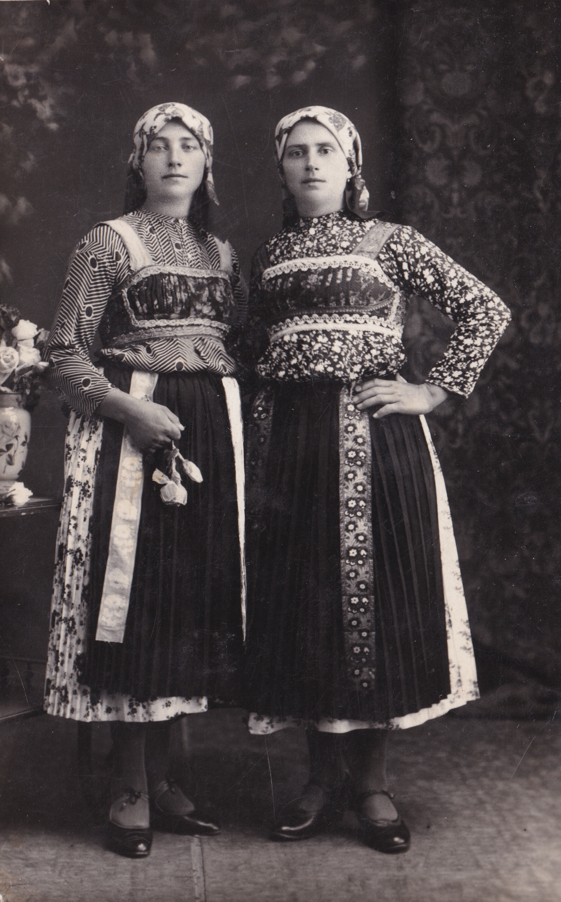 Dvi divojke iz Vrha oko 1900. Divojke su sestre Angele Kirisits (Gela Pafkina), rodj. Zsivkovics.