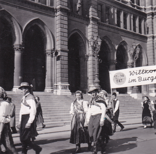 Die Stinatzer Volkstanzgruppe in Wien vor dem Parlament.