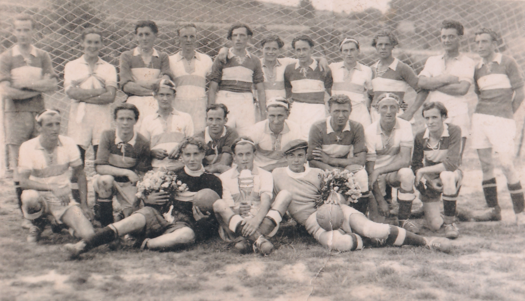 Mannschaft für das Fußballspiel Stinatz gegen Rudersdorf im Jahr 1949.