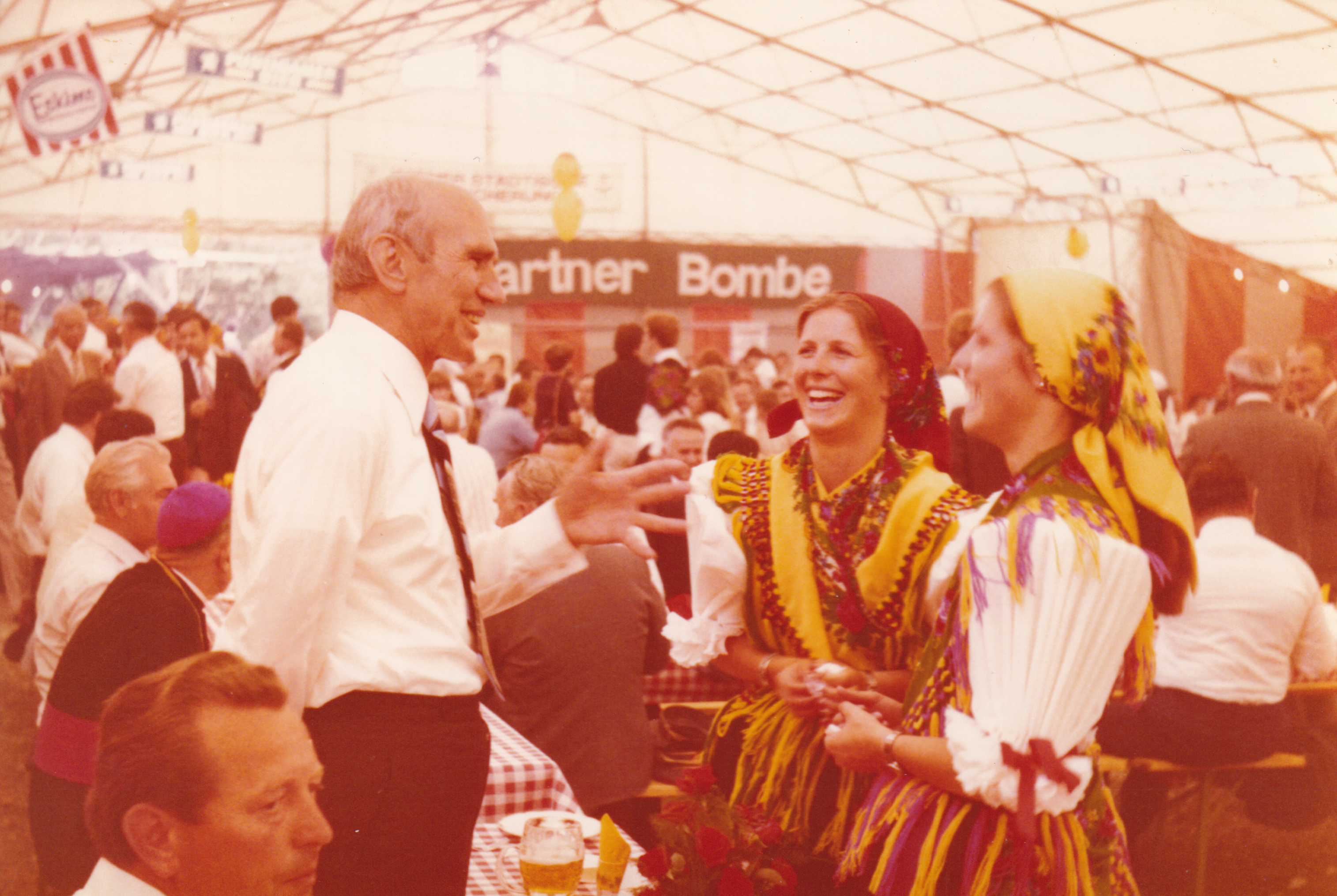 Terezija und Marijana Stoisits (Stočičeve) unterhalten sich mit dem damaligen Bundespräsidenten Rudolf Kirchschläger.