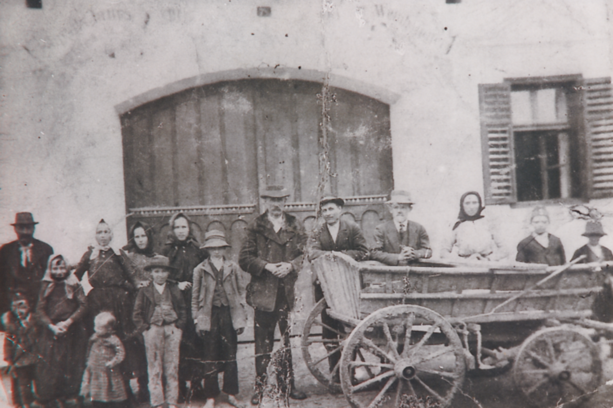 Šimin, damals der größte Mann von Stinatz, und seine große Familie (14 Kinder) vor ihrem Haus (heute Hauptstraße 128).