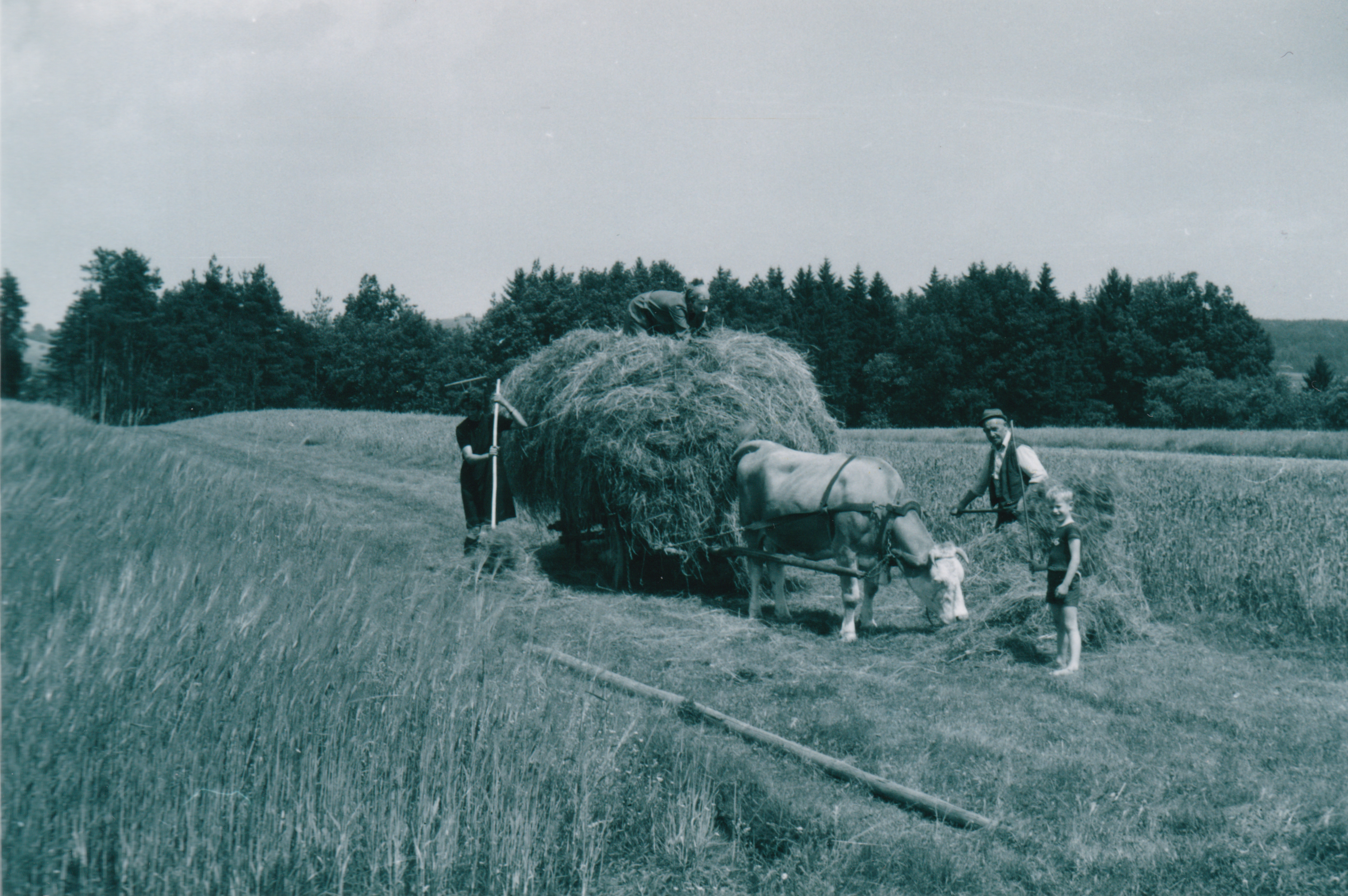 Gisela Zsivkovics (Gizela Stočićeva) und Anna Stoisits (Nana Petelinova) laden Heu auf den Wagen.