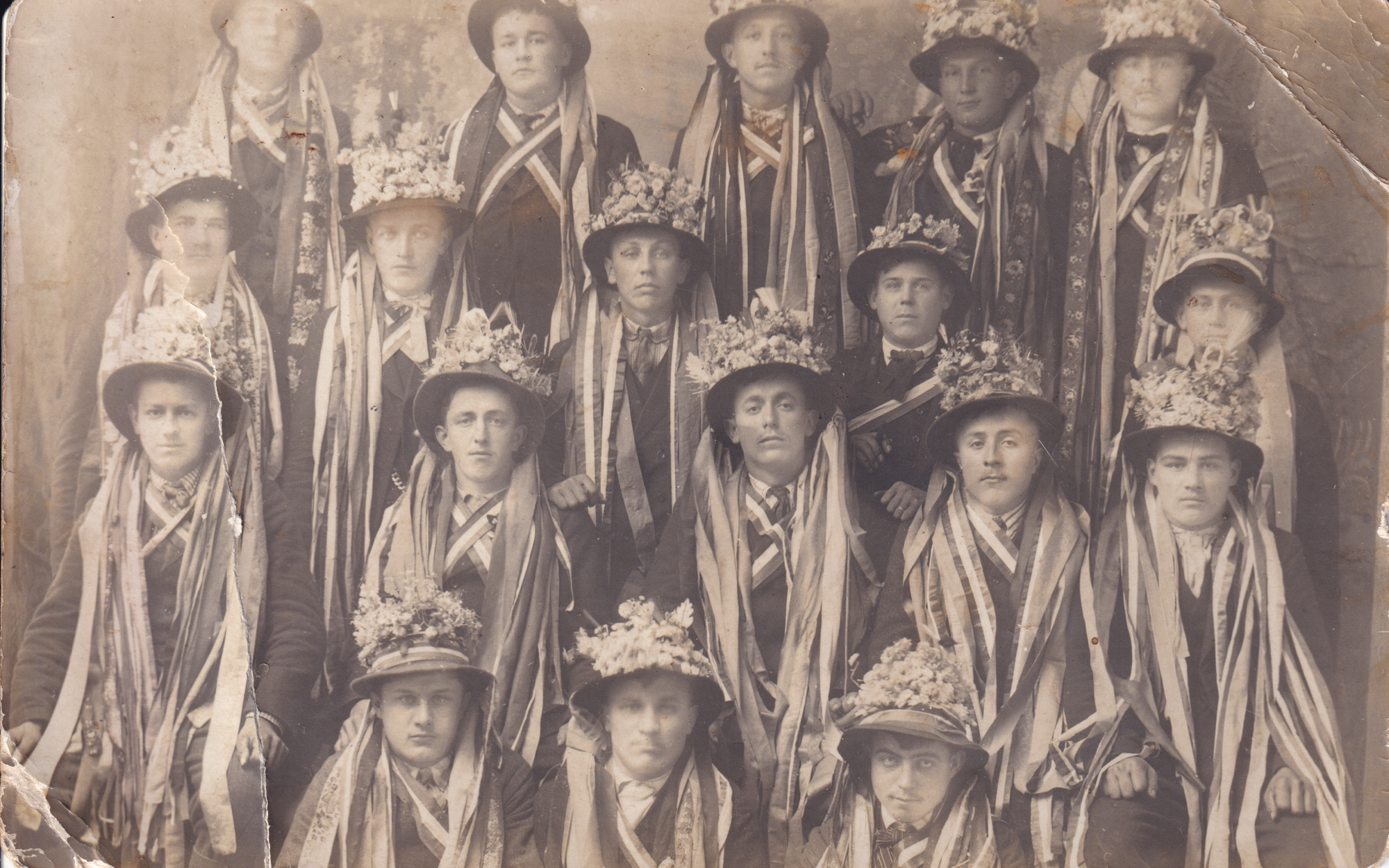 Kipic grupe mladih muži po štelungu (pukanju) vjerojatno u 1910-i ljeti.