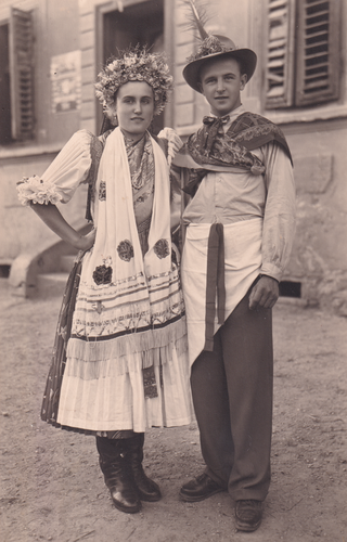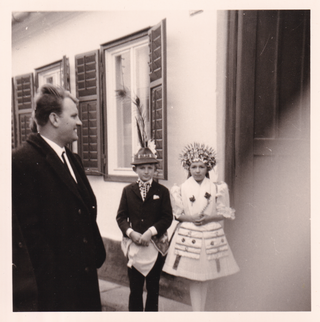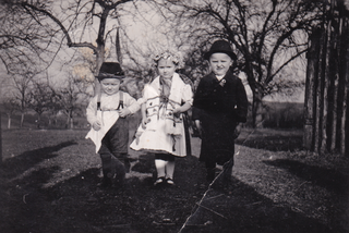 Das kleine Kränzlerpaar führt den Hochzeitszug an.