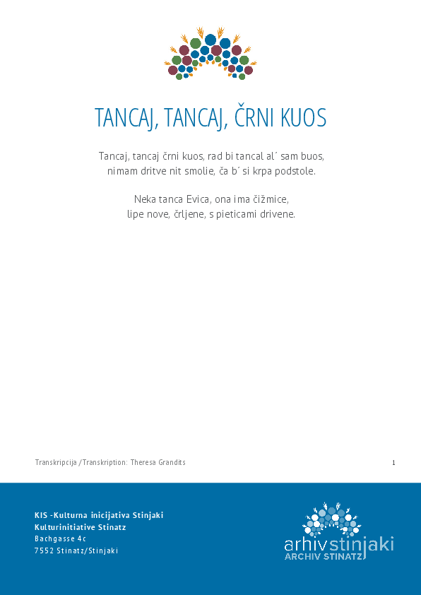 Tancaj, tancaj, črni kuos 1965. Tanz, schwarze Amsel 1965