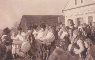 Stanovičtvo kod vučenja hrasta 1950. ljeta. Vučenje hrasta je organizirao farnik Luka Drimmel 1950. ljeta, da se pobiraju dari za nove crikvene zvone.